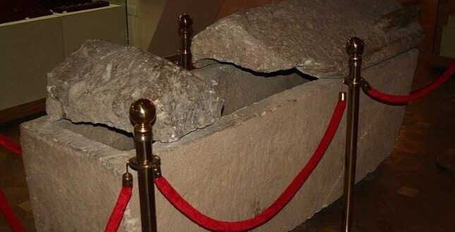 هذا التابوت الحجري يعود للأمير الأرمني غريغور أماتوني ،من القرن التاسع. هي من موجودات “متحف تاريخ أذربيجان” في باكو.