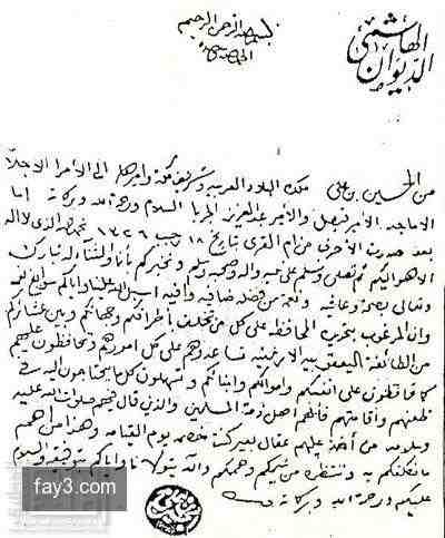 صورة فتوى شريف مكة حسين بن علي بمساعدة الأرمن الناجين من الإبادة العرقية.