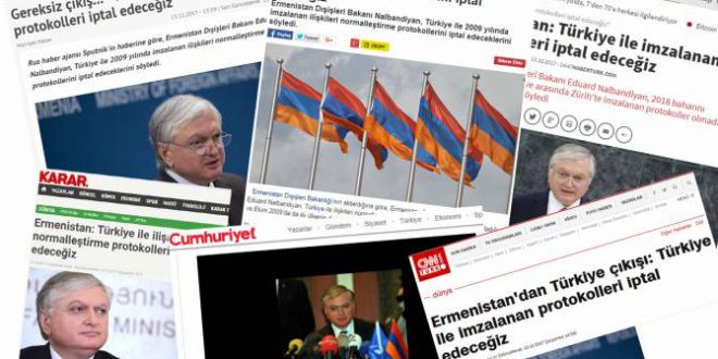 ونقلت صحيفة “حرييت” التركية عن البيان التالي: “أعلن رئيس أرمينيا في أيلول/سبتمبر من منبر الجمعية العامة للأمم المتحدة أن أرمينيا ستعلن أن البروتوكولين لاغين وباطلين، لأنهما يفتقران باستمرار إلى أي تقدم إيجابي نحو تنفيذهما وقال أننا سندخل الربيع لعام 2018 بدون تلك البروتوكولات”.