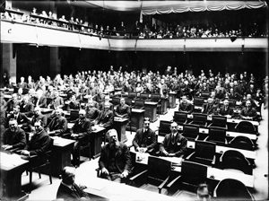 هدف عصبة الأمم التي أنشئت في عام 1919 خلال مؤتمر باريس للسلام هو توفير السلام وتنمية روح التعاون بين الشعوب. بدأت عصبة الأمم أنشطتها في 10 يناير عام 1920. ووفقا للميثاق، فإن هيئات إدارة عصبة الأمم هي الجمعية والمجلس والأمانة العامة وذلك بتوجيه من الأمين العام.