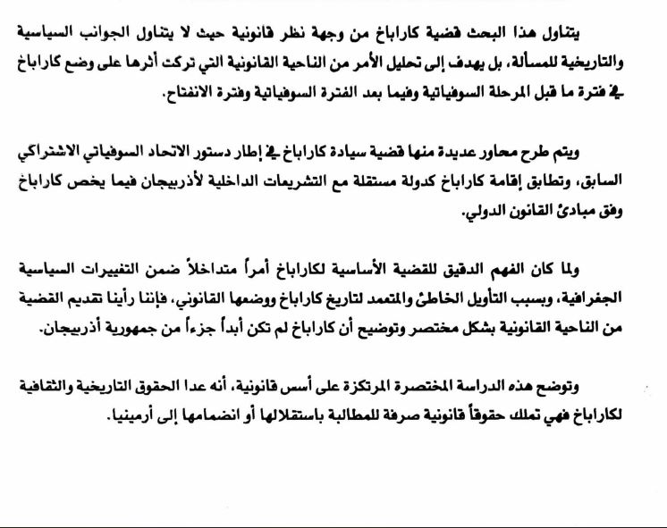 اسم الكتاب : “كاراباخ وجهة نظر قانونية”