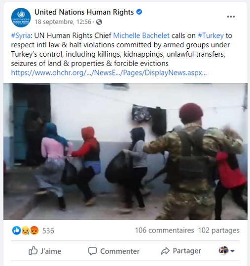 نضم أصواتنا إلى صوت المفوضة السامية للأمم المتحدة لحقوق الإنسان ميشيل باتشيليت في حث السلطات التركية على الاحترام الصارم للقانون الدولي وضمان وقف الانتهاكات التي ترتكبها الجماعات المسلحة الواقعة تحت السيطرة الفعلية لتركيا على الفور!