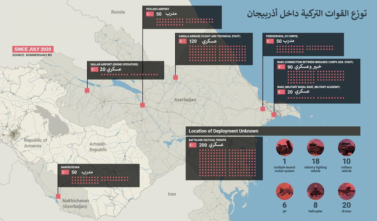 الرئيسية / القفقاس / أذربيجان / خارطة تمثل توزع القوات التركية داخل أذربيجان.