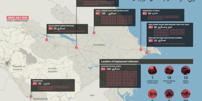 الرئيسية / القفقاس / أذربيجان / خارطة تمثل توزع القوات التركية داخل أذربيجان.