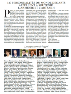 نشرت مجلة “لوفيجارو” دعوة 120 شخصية ثقافية ومفكرا فرنسيا بارزا للدفاع عن أرمينيا وآرتساخ.