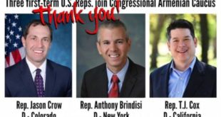 يريفان في 23 يناير/أرمنبريس: إنضم إلى اللجنة المعنية بالقضايا الأرمنية في الكونغرس الأمريكي ثلاثة أعضاء جدد.المستشارو الأول أنتوني برينديسي، تي. جيه. كوكس (ديموقراطي) والنائب جيسون كروس (D-CO) هم المشرعون الجدد الذين انضموا إلى اللجنة، هذا وفقاً للجنة الوطنية الأرمنية- الأمريكية (ANCA).