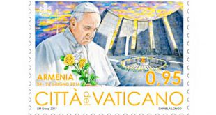 أصدر الفاتيكان في 23 نوفمبر سلسلة من الطوابع البريدية، احتفالا برحلات البابا فرنسيس في عام 2016، بما في ذلك طابع بريد ا يحتفل بالزيارة الرسولية لأرمينيا. الطابع من تصميم الفنانة دانييلا لونغو، حيث يظهر البابا في لحظة من الصلاة أمام نصب الإبادة العرقية الأرمنية في يريفان. وللتذكير، قام البابا فرنسيس …