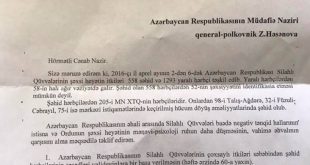 في تقرير بتاريخ 82-4-2016 إلى وزير الدفاع الأذربيجاني يورد نائب وزير الدفاع الأذربيجاني ورئيس أركان القوات العسكرية الأذربيجانية خسائر الجيش في العديد في الفترة 2 إلى 6 نيسان 2016 بما يلي: 558 قتيل لم يتم التعرف على 52 منهم 1293 جريح بينهم 58 في إصاباتهم بالغة ومن أجل منع التدهور …