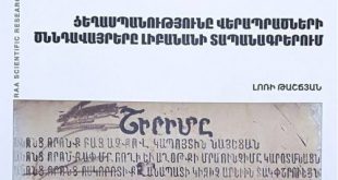نشرت المؤسسة الأرمنية لأبحاث المعمارية كتابًا للمؤلفة اللبنانية من أصول أرمنية لوري طاشجيان بعنوان “نقوش الأضرحة اللبنانية لأماكن الولادة للناجين من الإبادة”. وهي الدراسة العلمية الـ 18 التي تنشرها المؤسسة. يعرض الكتاب لأضرحة الأرمن الذين ولدوا في أرمينيا الغربية وأماكن أخرى في الإمبراطورية العثمانية ، و نجوا من …