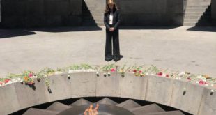 يريفان في 8 يونيو/أرمنبريس: زارت سفيرة الولايات المتحدة السابقة في الأمم المتحدة سامانثا باور، المتواجودة في أرمينيا هذه الأيام، النصب التذكاري للإبادة الجماعية الأرمنية-تسيتسرناكابيرت بيريفان. ووضعت باور الزهور أمام “الشعلة الأبدية” وبعد ذلك نشرت رسالة على تويتر: “تأثرت جداً ب#Armenia أخيراًن شكراً لمبادرة auroraprize_ الإنسانية الرائعة ولمتحف الإبادة الجماعية الأرمنية لعملها الأساسي …