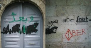 بتاريخ 23 شباط عند حوالي الساعة العاشرة والنصف تم كتابة نقوش عربية وإنكليزية ذات محتوى عرقي وتحرض على الكراهية على الباب الرئيسي لكنيسة رئيس الملائكة في بالاط. أعضاء مجلس الحي قاموا بتصوير تلك الكتابات ونقلوا الصور والفيديوهات إلى القائم بأعمال البطريركية البطرك آرام أتيشيان. كما قام المجلس بإبلاغ مديرية …