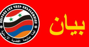 بيان لجنة متابعة القضية الأرمنية في سورية إن لجنة متابعة القضية الأرمنية في سورية تحي الشعب السوري وممثليه في مجلس الشعب على قراره بالاعتراف وإدانة جرائم الإبادة الجماعية لأرمن أرمينيا الغربية التي قام بها الأتراك في الإمبراطورية العثمانية. إن هذه الوقفة مع الشعب الأرمني في قضيته التاريخية هي تعبير عن …