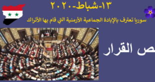اليوم في 13-2-2020 يقوم البرلمان السوري بمنافشة قرار الإعتراف بالإبادة الأرمنية.