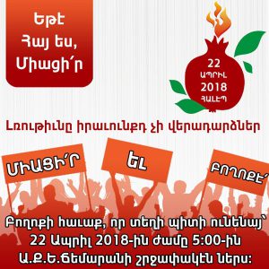يذكر الملصق مكان الوقفة في مدينة حلب في يوم 22 ابريل 2018 الساعة الخامسة.